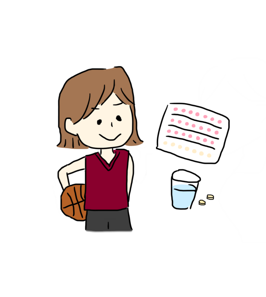 もちろん、妊娠をしないようにする薬でもありますが、普段の月経に関する症状や、試合や試験などの大事な時に自分のベストを尽くせるようにすることも、ピルを使うことで可能になります。ピルには、月経の時期をずらしたり、量を軽減したり、月経前に起こるイライラや無性に食べたくなる気持ちなどを軽くし、改善する効果もあります。