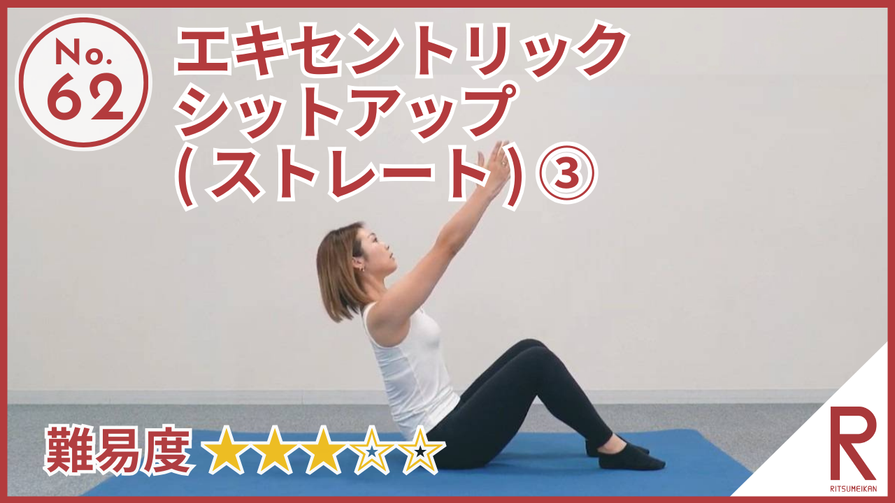 エキセントリック・シットアップ(ストレート)3(手を上げて) 難易度:★★★ 上体を床にゆっくりと下ろしていくことに注力し、体幹の筋肉が伸びながら発揮する力を鍛えましょう。エクササイズの効果を最大限に引き出すために、両手を挙げ、頭からお尻までまっすぐな状態を保持しながら、ゆっくりと […] #体幹部